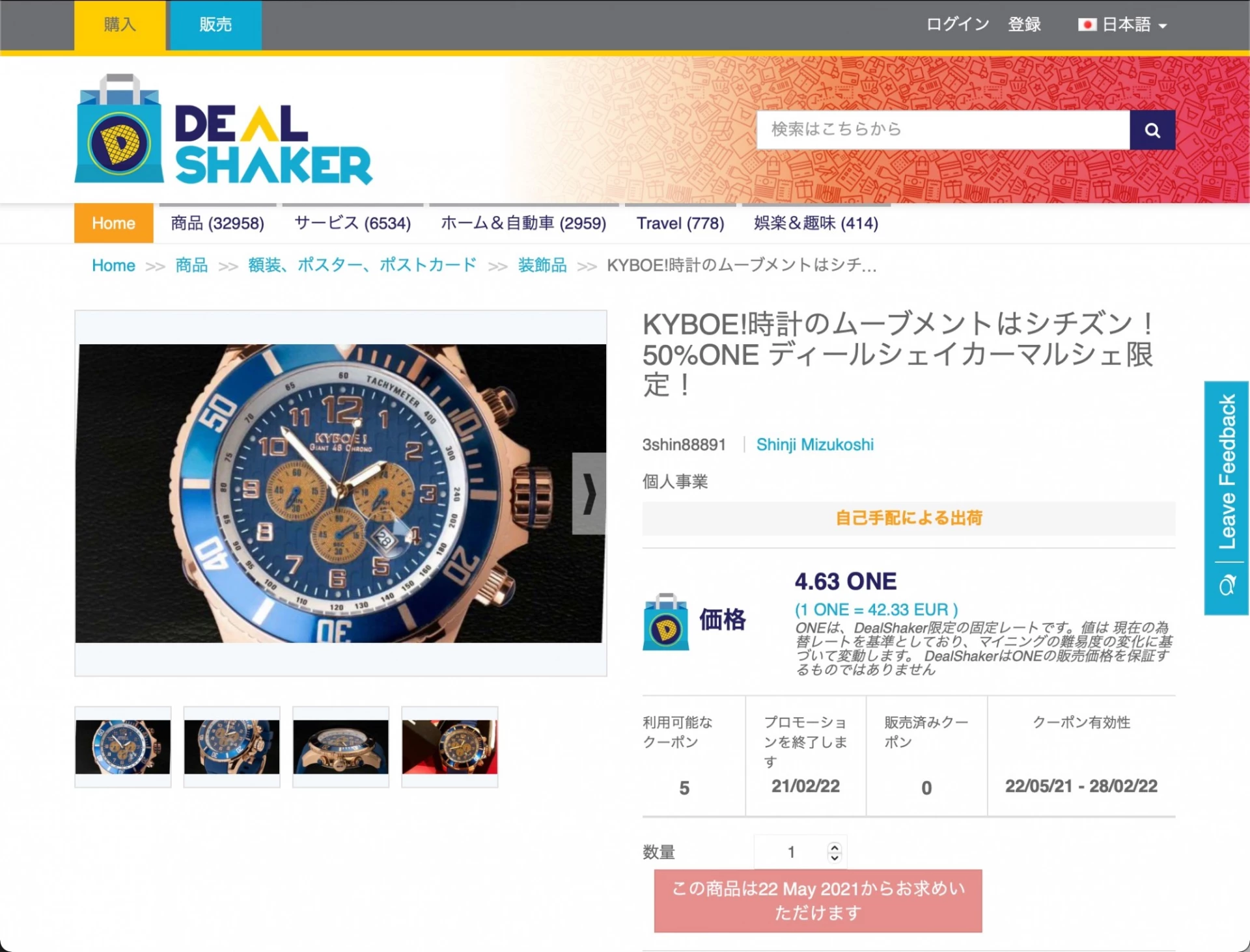 時計のムーブメントはシチズン!50%ONE ディールシェイカーマルシェ限定!